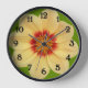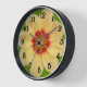 Estiloso reloj de pared con números negros que muestra la imagen de una flor Dahlia amarilla contra un fondo verde lima. ¡Un bonito diseño floral! Utilícelo para decorar una sala de estar, comedor, cocina, dormitorio o cualquier otra habitación. Seleccione su tamaño y estilo de reloj.