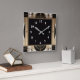 Reloj de Art Deco cuadrado oscuro en blanco y oro