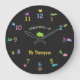 Personalizar un divertido "aula de" reloj analógico con números y puntos de colores brillantes y pequeños animales lindos del zoológico.
