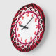 Un hermoso reloj para los amantes de las huellas de animales. ... . incluyendo las huellas de animales que son un poco más inusuales! Una huella de cebra negra y roja cubre la base del reloj, mientras que la cara blanca está cubierta con colores que se coordinan bien con la impresión - números rojos, encaje blanco y anillos de borde rosado/negro caliente.