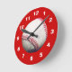 Fotografía de una pelota de béisbol en el centro del reloj con fondo de color burdeos y letras blancas.