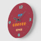 Un reloj de cocina de colores llamativos en rojo. Los números y las palabras simplistas y coloridas dicen "Itz Coffee Time" Perfecto como un diseño divertido para su cocina.También como un regalo maravilloso para los amantes del café.