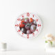 Este reloj de pared de cocina personalizado es perfecto para jardineros, granjeros, vegetarianos y veganos. Tiene una foto de tomates cerezos en el centro. Alrededor del borde hay un anillo blanco, con números rojos para las horas y puntos rojos para los minutos. Puede borrar cualquiera de estos. Más relojes personalizados de los amantes de la comida en el lápiz de Alina.