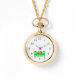 Pueden admirar mi adorable dibujo de un cachorro esponjoso jugando con césped verde lleno de flores, yo llamo a este dibujo, "Pup N Play". Este reloj de collar de oro es el regalo perfecto para cualquier ocasión.