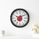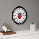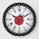 Reloj de polka punteado estilo retro con una estrella de pólka de color rojo brillante en el centro.