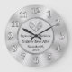 Ideas de regalo de Aniversario Boda Personalizado. Bodas de plata y gris con 4 cajas de texto con cada uno de los NOMBRES de la pareja, FECHA Boda y mensaje de su Boda especial. Borra cualquier texto o todo. Llame al Diseñador Linda para el diseño o los cambios de color o para crear un regalo de boda diferente. Diseñadora de llamadas Linda: 239-949-9090 Ideas maravillosas e inolvidables para la novia y la pareja. Les encantará ver sus nombres y su cita con el boda. Regalos matrimoniales con temática plateada y regalos de decoración casera de boda gris. Colores tontos bajo los números del reloj. Consulte las instrucciones siguientes si desea cambiar el Centro y el texto de color gris a CUALQUIER COLOR o llame a Linda para obtener ayuda: 239-949-9090 INSTRUCCIONES sobre el cambio del COLOR de TEXTO y o COLOR DE FONDO Cambiar los COLORES de TEXTO Instrucciones: haga clic en el botón "Personalizar" para cambiar colores y más opciones de Personalizable. Cambiar el COLOR DEL TEXTO: Después de hacer clic en el BOTÓN "Personalizar", haga clic en el TEXTO o en la capa que desee cambiar (dentro del área "Personalizar" a la derecha del producto). Haga clic en la pequeña caja de color dentro de la sección "Personalizar it". Elija un nuevo CUADRO DE COLOR y haga clic en "Listo". Para obtener más opciones de color, haga clic en el diminuto "Icono de la herramienta de cuentagotas oculares" azul y seleccione otra caja de color o utilice la herramienta de diapositivas o haga clic en "Avanzado" para introducir un código HEX de color Pantone # Haga clic en "Hecho". Haga clic en "Listo" Cambiar las instrucciones de COLOR de FONDO: haga clic en "Botón Personalizar" si no lo ha hecho todavía. Haga clic en una de las minúsculas Cajas de color debajo<b>"Color de fondo" a su derecha debajo del área "Personalizar it". Para obtener más opciones de color, haga clic en el diminuto "Icono de la herramienta de cuentagotas oculares" azul y seleccione otro<b>Cuadro de color o utilice la herramienta de deslizamiento o haga clic en "Avanzado" para introducir un código HEX de color Pantone # Haga clic en "Listo". LLAMA o TEXTA a Linda para órdenes especiales de Personalizados o si quieres que haga cambios en mis diseños para ti o que ponga el diseño en un producto diferente. Zazzle.com/LittleLindaPinda* LittleLindaPinda@gmail.com LLAMADA o TEXTO Pequeña Linda Pinda: 239-949-9090