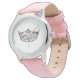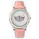 Mirador de correa de cuero rosa para niños con una estampada de corona de concurso. Personalizar este reloj o compra como está.