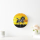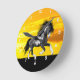 Caballo de pintura salvaje con un impresionante reloj de pared de puesta de sol