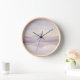 Reloj elegante de pared con un tranquilo amanecer de montaña en suaves tonos pastel. Un momento de ensueño y tranquilidad para la decoración de un hogar natural