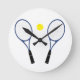 Un ilustracion gráfico de estafas de tenis azules y de una pelota de tenis amarilla un reloj de Gran Muralla para el entusiasta del tenis/del deporte