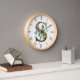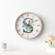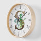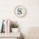 Reloj de pared con marco de madera que presenta un monograma de letra S de madera rústica con adorno de eucalipto y lavanda en acuarela. Perfecto para las paredes del dormitorio o la sala de estar.