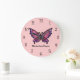 Reloj rosa de pared con mariposa de bonito y espacio de monograma que puede añadir un nombre o iniciales en la cara del reloj. Diseño de relojes decorativos en las paredes para chicas, niños, dormitorios universitarios o habitaciones para niñas. Los mejores relojes para bebés, chicas, amantes de la naturaleza o amantes de las mariposas. Los colores son rosa, melocotón, blanco y marrón.