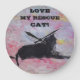 Ama a tu gato de rescate... esta es tu oportunidad de hacer saber a todos. Reloj de pared ofrecido en diferentes tamaños. Manos de reloj ofrecidas en negro o gris. La imagen en reloj es de una pintura abstracta que creé con mi dulce gato en mente. Ideal para añadir un agradable toque de color a cualquier habitación.