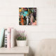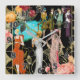 Reloj Art Decó Vintage de la Pared de Moda. Colorido, llamativo, haciendo declaraciones. Respaldado en negro con colores vibrantes. Una versión similar está respaldada por tonos rojos.