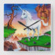 Arte de fantasía mágico Reino de Unicornio. Escena mágica de un noble unicornio mirando a su reino. Ilustracion de color de agua y aerógrafo. Cuidado con otros productos de gran calidad que presentan este diseño original.