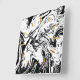 Elegante reloj de pared de mármol blanco y negro, con un toque de oro.