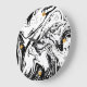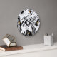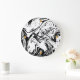 Elegante reloj de pared de mármol blanco y negro, con un toque de oro.