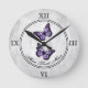 Añada un toque elegante a su casa con un reloj de pared acrílico personalizado de la flor de mariposa púrpura. El diseño del reloj presenta un par de mariposas vibrantes que descansan sobre una vina floral blanca sobre un fondo gris claro. También hay artículos de regalo adicionales disponibles con este diseño.