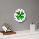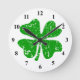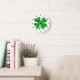 Reloj de pared afortunado del trébol de cuatro hojas del trébol verde. Decoración del día del St Patricks de la apariencia vintage. Gráfico de vector del estilo del Grunge para el fiesta irlandés del día del St Paddys. Diseño de las palmaditas del santo.