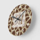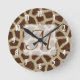 Reloj de pared salvaje de la inicial del monograma de la piel de la tela de la selva del parque zoológico del safari del gato del estampado de animales del punto de la jirafa personalizado