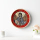 Este reloj de pared de temática religiosa presenta un tradicional ícono ortodoxo oriental pintado al estilo bizantino del popular Arcángel Gabriel. Junto con Arcángel Michael, Archangel Gabriel es uno de los ángeles más venerados por los dos ritos cristianos más antiguos (el ortodoxo griego y el católico romano). Su nombre se traduce como "Dios es mi fuerza".