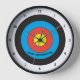 Celebrate your love of archery with this bullseye target themed wall clock. Perfect for a den, office, the man cave, or anywhere! Personalize with any name.