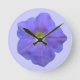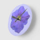Este impresionante reloj muestra una foto de una petunia azul con tonos morados y un centro blanco.