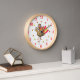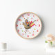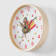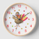 Un lindo reloj colorido para los niños con mi arte digital de un pequeño pavo rodeado de hojas de otoño.