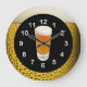 Reloj de pared vaso de cerveza ámbar negro dorado redondo "La hora es Beer O'Clock"