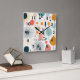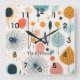 Añada un toque acogedor de kitsch a su casa, remolque de viaje o nido de cabaña con este reloj de pared de estilo de mediados de siglo. Creado en una flor abstracta retro, hojas y vainas patrón en tonos de azul naranja y verde azulado con acentos negros llamativos. Su elección de estilo redondo o cuadrado. Ver más en esta colección de diseño en Camp y Cottage en Zazzle.