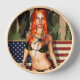 Nene pelirroja caliente en camo bikini con diseño de bandera estadounidense