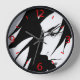 Reloj de pared de personajes de la manga con un ilustracion en blanco y negro al estilo manga de la cara de un personaje masculino con el pelo soplado por el viento y números rojos. Este reloj con estilo sería un gran regalo para alguien un fan del anime / manga.