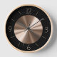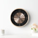 Un diseño de moda en negro con un centro de bronce. Este reloj de pared clásico está realzado por un marco de madera. Vea Orientcourt para una diversa gama de diseños de relojes.