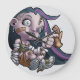Añada un toque de elegancia espeluznante a su espacio con el asombroso reloj mural Chica zombie. Con un sorprendente ilustracion a mano de un cautivador chica zombi, este reloj es perfecto para los amantes del arte macabro y único.