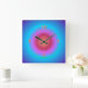 Un reloj de pared brillante con azul iluminado, aguamarina, rosa y naranja quemada. Números para combinar. Un reloj diseñado artísticamente, para cualquier persona. Nota... este no es un producto led.