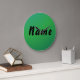 Agrega un toque personal a tu espacio con este reloj de pared de nombre personalizable. Con un fondo verde limpio y tipografía elegante, combina estilo con simplicidad.