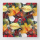 Reloj de pared elegante que presenta un vibrante patrón de hojas de otoño en tonos ricos de amarillo, rojo y verde, diseñado para llevar calidez y encanto estacional a cualquier espacio. Este reloj moderno combina el diseño artístico con la funcionalidad, lo que lo convierte en un acento decorativo perfecto para interiores inspirados en el otoño.