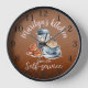 En el centro del reloj, encontrarás una cafetera de diseño intrincado, una taza de café, lista para empezar el día, y rollos de canela, recién horneados a la perfección. Para hacer de este reloj de pared con temática cafetera verdaderamente su propio, le ofrecemos la opción de personalizar con su nombre o un mensaje especial.