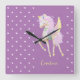Reloj de pared con una linda imagen de un unicornio sobre un fondo rosado - lila.
