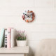 Reloj de pared coralino de la inicial del monograma del mar del verano del dólar de arena del océano de la arena de los pescados de la estrella de la playa personalizado