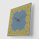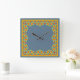 Reloj de pared cuadrado de bonito, con un borde de flores de Pot Marigold sobre un fondo índigo. Parte de la colección "Marigold Medley" de Posh & Painterly.