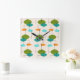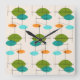 Este reloj de pared cuadrado del patrón atómico retro del móvil es de estilo moderno de mediados de siglo. El diseño de inspiración vintage presenta un fondo crema con ondulados óvalos puntiagudos en color turquesa, naranja, verde azulado y verde aguacate. Los verde azulados y verdes aguacates se superponen creando una hermosa sombra de color azul pavo real. Los estallidos divertidos acentúan la inclinación y las líneas rectas, que conectan las formas formando un patrón móvil kitsch. Este diseño moderno combina a la perfección con los productos Retro Grid y Starburst de StrangeLittleOnion.