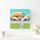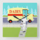 ¡Si usted tiene una sed para un diseño moderno de los mediados de siglo, este reloj de pared de acrílico del lechero retro de la pequeña ciudad está para usted! El estilo de los años 60, características del diseño minimalistas del arte un dedicado, lechero que hace su mañana redondea. El hombre rubio está llevando los pantalones, la camisa y el gorra blancos lechosos con una pajarita, una correa y zapatos negros. Este hombre de entrega del calcio y de la vitamina D está caminando encima de una acera delantera, llevando la fuente semanal de una familia de leche sana, fresca en las botellas de cristal. El periódico de mañana todavía está en la acera. No se preocupe. ¡Solamente las buenas noticias se permiten en esta ciudad! La acera es rodeada por el tipo de césped verde encontrado solamente en pequeñas ciudades y áreas residenciales. Hay también un blanco, valla de estacas. ¡En la calle, vemos el paseo dulce del lechero! Es un amarillo cremoso, camión de la leche con una raya roja en el lado y las letras rojas que dicen, "LECHERÍA". En el lado opuesto de la calle, vemos un cielo de la aguamarina y las siluetas azules claras de los árboles de cedro. Este dibujo animado kitschy parece una escena fuera de una vieja comedia de enredo de la televisión. Traiga en la torta amarilla con helar del chocolate--¡la torta oficial de todas las amas de casa de la televisión y de sus familias afortunadas! ¡Los huesos fuertes constructivos nunca probaban tan buenos!