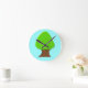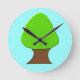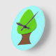 Este impresionante reloj presenta una divertida imagen digital de un árbol con una tapa verde y un tronco marrón sobre un fondo azul cielo.