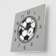 Reloj de pared con temática deportiva con acentos en blanco y negro con una pelota de fútbol en el centro. Tu elección de cuadrado o redondo. Cambie el color de las manos y del fondo si lo desea. Ideal para una habitación de niño o adolescente o para la cueva de hombre.