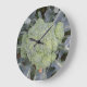 Este impresionante reloj muestra una detallada fotografía de una cabeza de brócoli creciendo en un jardín. Las floretas verdes muy bien agrupadas están rodeadas por las grandes hojas exteriores de la verdura.