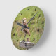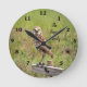 Lechuza criada en pie sobre una perca hecha a mano con un fondo de hierba natural. Hace un reloj maravilloso para la familia de la naturaleza. Se puede cambiar el apellido.