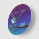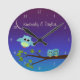 Dos lechuzas se abrazan y se establecen para dormir bajo un cielo crepúsculo de estrellas brillantes mientras que la madre lechuza las observa. Fácil de personalizar o borrar el texto sólo para las ilustraciones. Este diseño funciona tanto para los relojes de tamaño medio como grande. Obra de arte original de Night Owl's Menagerie, 2010.