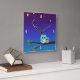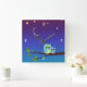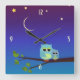 Un búho se acaricia con su pequeña estrella bajo un crepúsculo cielo de estrellas brillantes. Obra de arte original de Night Owl's Menagerie, 2010.