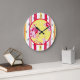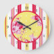 Este reloj de pared de cabaña de época presenta rosas, puntos de polka y rayas para un aspecto de Shabby Chic o Cottage.